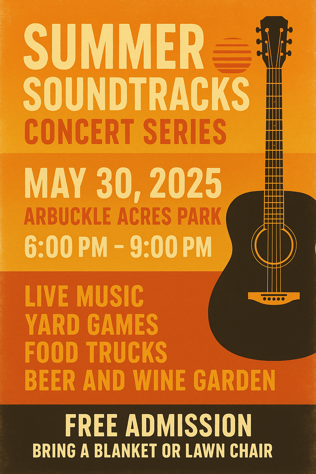 BROWNSBURG — On Friday, May 30, 2025, the Town of Brownsburg will officially welcome the warmer months with the return of its annual “Summer Soundtracks” Concert Series, a free public event that transforms Arbuckle Acres Park into an open-air celebration of music, food, and summer community spirit. The evening event runs from 6:00 PM to 9:00 PM, providing an early-summer escape filled with entertainment, activities, and relaxation for all ages.