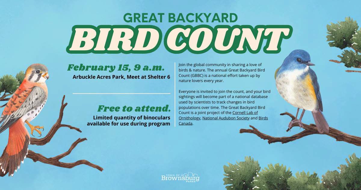 The Great Backyard Bird Count is more than just an event—it’s a movement that brings people together to celebrate and protect birds. Brownsburg is proud to be part of this international initiative, and we invite you to join us on February 15 at 9 a.m. at Arbuckle Acres Park.